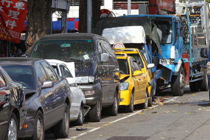 中國臺灣網7月11日消息 據臺灣媒體報道,今天上午7點15分,正處上班高峰期,臺中市1輛大貨車駕駛賴某載運大型電器設備,行經臺中市自由路與復興路口處疑剎車失靈不慎追撞2輛小貨車后,失控沖撞路邊停車,把7輛車推擠成一團。事故原因警方正在調查中。(中國臺灣網 焦源源)