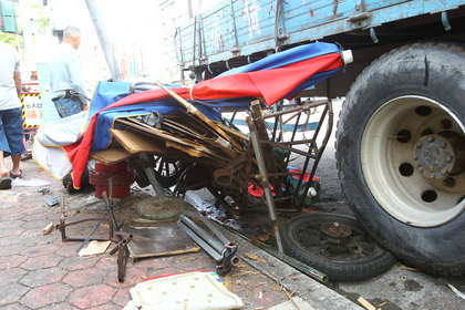 拼裝的三輪車被撞壞。圖片來自臺媒