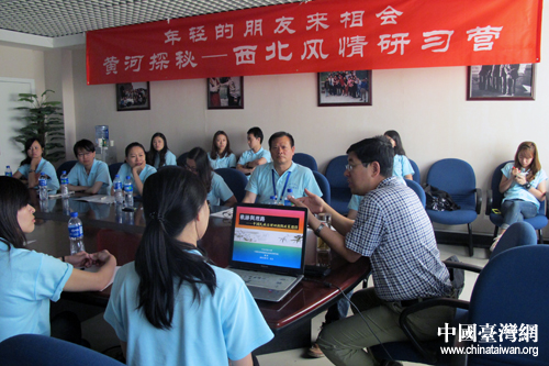 中央民族大學(xué)嚴慶教授與兩岸學(xué)子進行熱烈的交流探討。(中國臺灣網(wǎng) 張潔 攝)