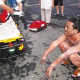 被燒兄弟,痛苦蹲在地上。圖片來自臺媒