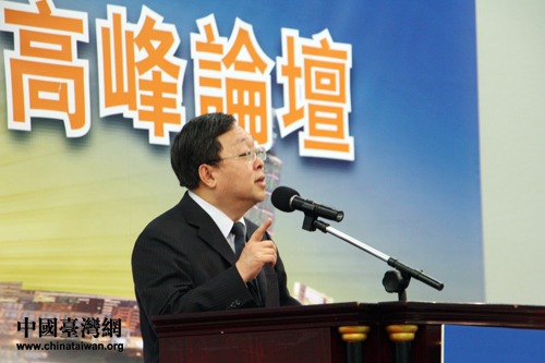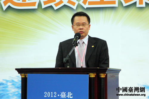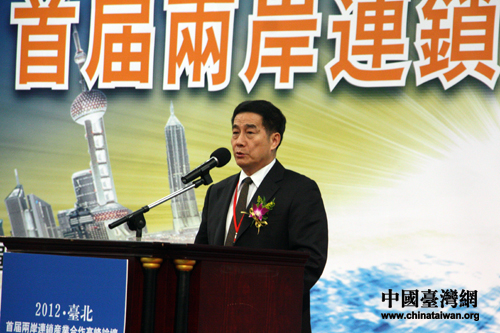 中華兩岸連鎖經(jīng)營協(xié)會理事長王國安作為主辦方在論壇上致辭。(中國臺灣網(wǎng) 張娜 攝)