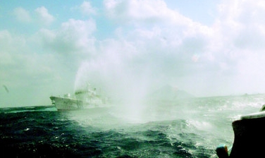 臺灣南方澳漁民發(fā)起“求生存、護(hù)漁權(quán)”活動,81艘漁船前往釣魚島護(hù)漁,昨天上午挺進(jìn)距釣魚島僅2.1海里,日本出動40多艘巡邏艦阻擋,向漁船噴水,并廣播要漁民離開;漁民回嗆“滾回日本”,不退讓,臺“海巡署”巡防艦也強硬“回噴”,雙方對峙。漁船在海上宣示后,昨晚返港。