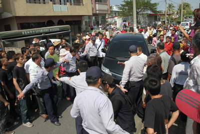 蘇治芬見群眾不理性隨即驅(qū)車離開,未料座車遭竟阻擋,經(jīng)警方出面始得座車離開,此時(shí)黑衣人再度出面強(qiáng)行阻擋,致現(xiàn)場(chǎng)發(fā)生激烈沖突,蘇治芬座車遭猛踹,司機(jī)及隨扈遭拉扯,導(dǎo)致2人受傷。云林縣府強(qiáng)烈譴責(zé)暴力,要求警方依法究辦。