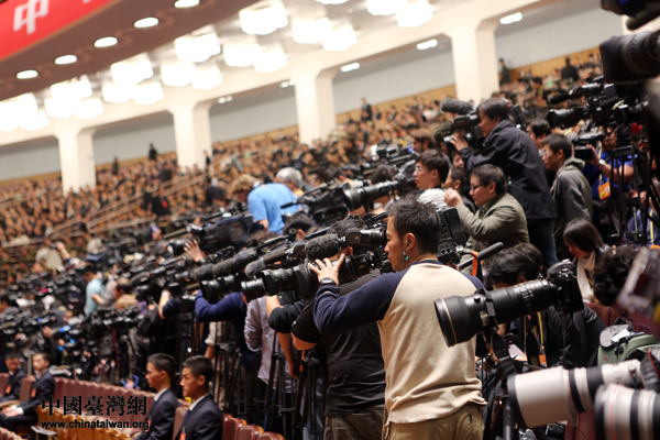 11月8日上午9時,中國共產(chǎn)黨第十八次全國代表大會在北京人民大會堂隆重開幕,圖為現(xiàn)場忙碌的媒體工作者。(中國臺灣網(wǎng) 王偉 攝)