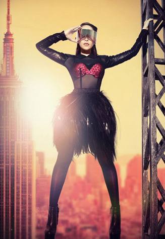 新專輯蕭亞軒化身“愛的隊(duì)長”,腳踩18公分高跟鞋站在鋼索上。(來源:臺(tái)灣《中國時(shí)報(bào)》)