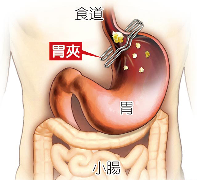 趙世晃指出,“胃夾”手術(shù)不用開腹,是以腹腔鏡進(jìn)行,從左肋骨下方的開口,將胃夾夾在胃外壁,縫4針固定,將胃部隔成上下兩胃囊,胃夾上突起約1公分直徑的孔道可供食物通過。
