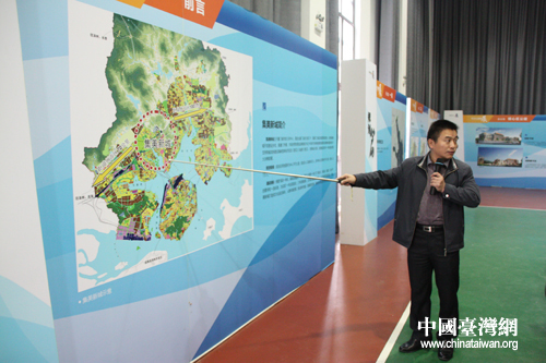 集美新城開發(fā)建設(shè)指揮部主任助理葉章旺向記者介紹新城的規(guī)劃方案(中國臺灣網(wǎng) 扶海濤 攝)