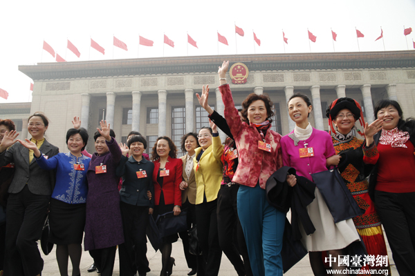 四川代表團中的部分女性代表。(中國臺灣網(wǎng) 何建峰 攝)
