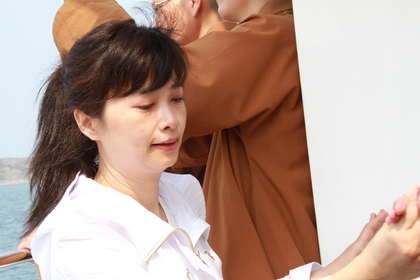 今天上午遺孀王芝祥及26歲的獨子潘惟智,依照潘安邦的生前遺愿,跨海來到已20年沒有踏上的潘安邦澎湖故居細(xì)細(xì)懷念后,將他的部分骨灰放入紙制的貝殼容器內(nèi),再放在蘭花編織成蓮花座造型的載具,在海天佛剎法師誦經(jīng)祝禱下,包船出海將他的骨灰海葬于西嶼內(nèi)埯外海,永眠外婆的澎湖灣。(中國臺灣網(wǎng) 王文英)