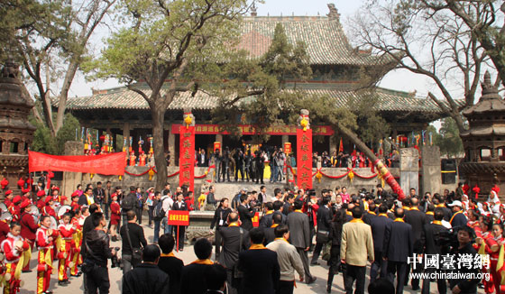 “海峽兩岸交流基地授牌暨關(guān)公祖廟圣像赴臺(tái)巡游活動(dòng)啟動(dòng)儀式”在山西省運(yùn)城解州關(guān)帝廟舉行。(中國(guó)臺(tái)灣網(wǎng) 李典典 攝)
