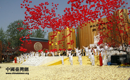 4月12日,舞蹈演員在癸巳年黃帝故里拜祖大典上表演樂舞敬拜。(中國臺灣網 李丹 攝)