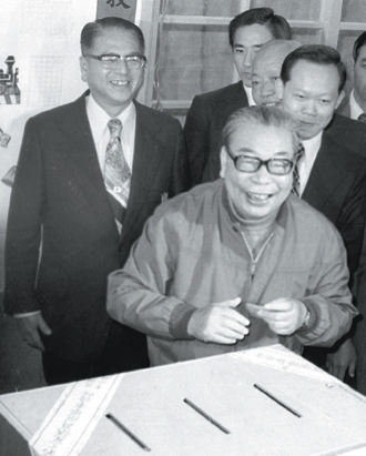 1977年,林洋港(左后)陪同蔣經國(左前)投票選舉臺北市議員。(來源:臺灣《聯合報》)