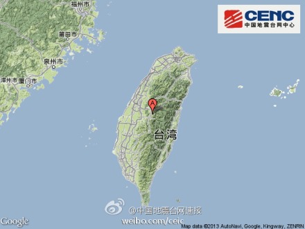 據臺灣“中央社”報道,臺灣中部地區今天下午13時43分發生規模里氏6.3級地震,震央在南投仁愛鄉。(圖片來源:中國地震臺網微博)