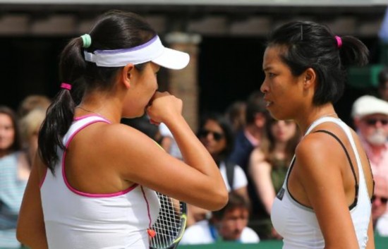 中國(guó)臺(tái)灣網(wǎng)7月3日消息 在今天進(jìn)行的溫網(wǎng)女雙四分之一決賽中,彭帥謝淑薇這對(duì)“海峽組合”面對(duì)揚(yáng)科維奇、與巴羅尼,直落二盤,順利晉級(jí)4強(qiáng)。