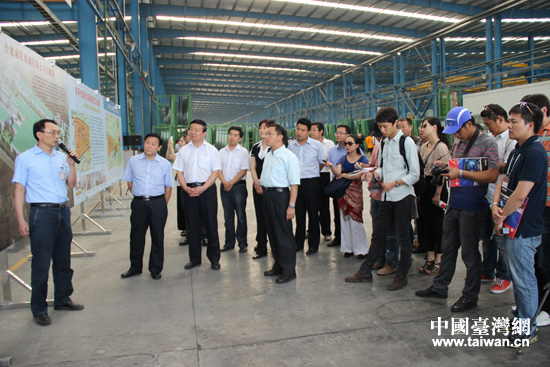 臺玻咸陽玻璃有限公司總經理藍政彥向兩岸記者介紹公司基本情況。(中國臺灣網 王文英 攝)