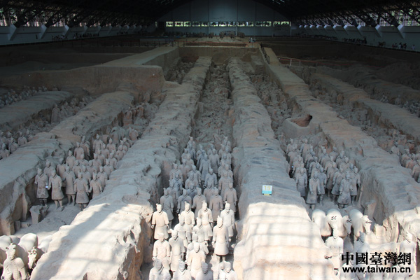 秦始皇陵兵馬俑一號坑盛大軍陣。(中國臺灣網 王文英 攝)