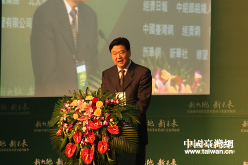 臺灣二十一世紀基金會執行長孫明賢發表題目為《兩岸合作發展現代都市農業》的專題演講。(中國臺灣網 王君飛 攝)