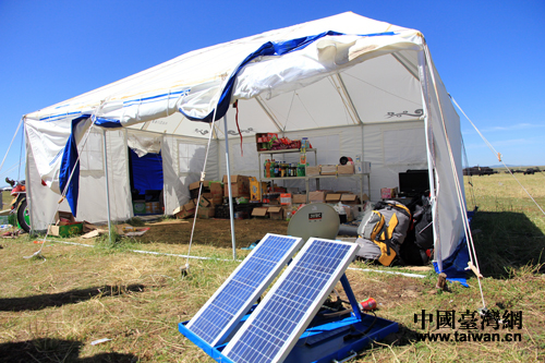 維瑪扎西的帳篷中,太陽能板和衛星電視一應俱全。(中國臺灣網 馬迪 攝)