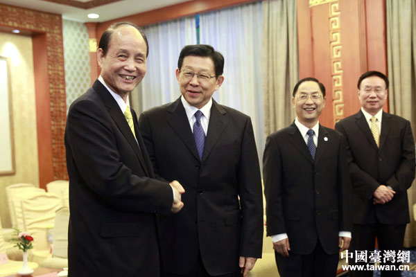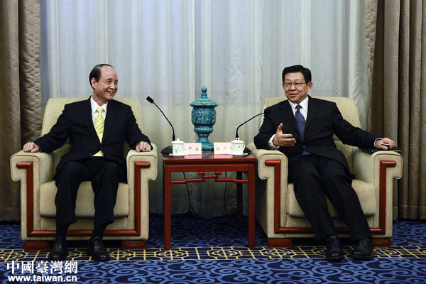 海峽兩岸關(guān)系協(xié)會會長陳德銘13日在北京會見了臺灣海基會董事長林中森及其率領(lǐng)的臺灣媒體高層大陸參訪團。(中國臺灣網(wǎng) 王偉 攝)