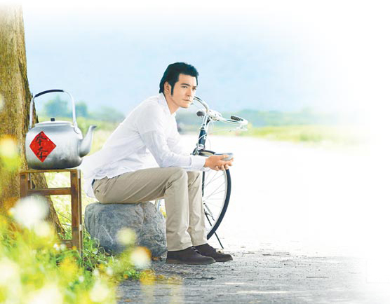 臺東池上鄉天堂路的大樹,在藝人金城武拍攝廣告(見圖)后爆紅,大批游客前往觀光,卻隨意丟棄垃圾,引發農民不滿。(圖片來自臺媒)