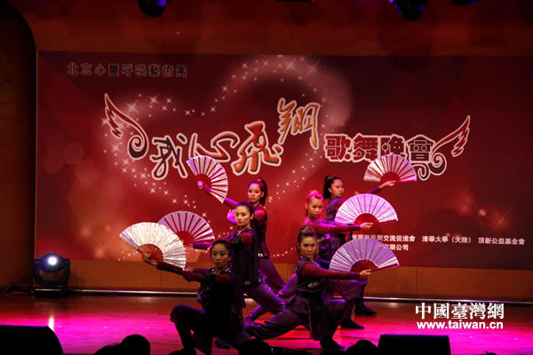 第六屆中華文化快車——北京心靈呼喚藝術團7日晚間在臺灣中國文化大學舉辦歌舞晚會,圖為藝術團聾人演員成員表演舞蹈《怒放的青春》。(中國臺灣網 普燕 攝)