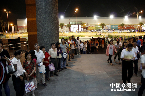 北京心靈呼喚殘疾人藝術團的到來受到彰化民眾的熱烈歡迎,圖為很多無票的觀眾大早來到演藝廳外排起長隊,期待開場時有若空位能進場觀看演出。(中國臺灣網 普燕 攝)