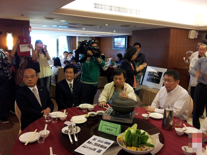蘇貞昌與柯文哲3日出席公開活動時餐敘同桌,但兩人互動不多。(圖片取自臺媒)