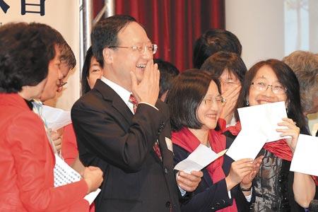 江宜樺受到現場學長姐、學弟妹熱烈歡迎,搶著合照,江宜樺來者不拒,并逐桌敬酒,最后還與同班同學上臺合唱,儼然是最受矚目焦點。