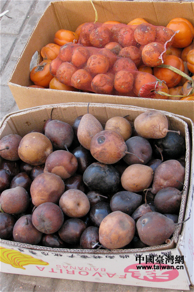 東北人冬天最愛吃的凍柿子、凍梨。(中國臺灣網 馬迪 攝)