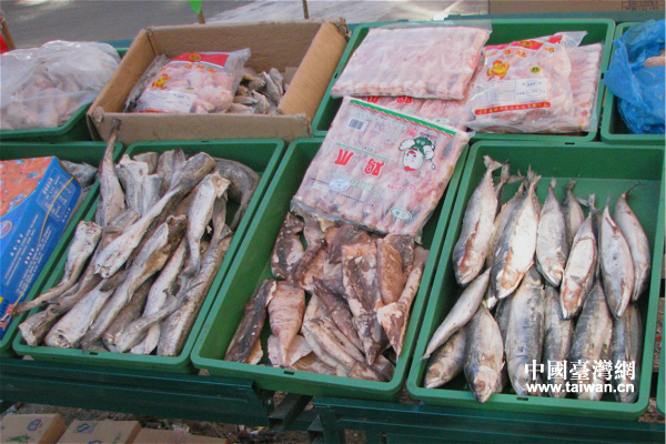速凍水產直接擺在路邊供人買賣。(中國臺灣網 馬迪 攝)