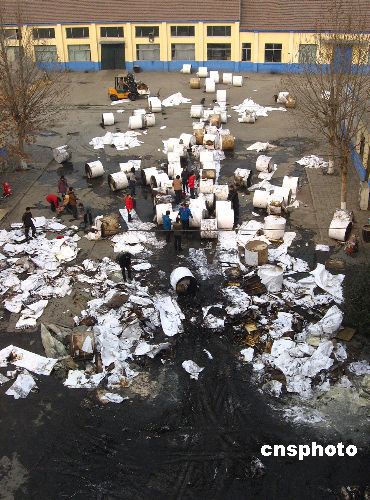 2008年2月7日大年初一中午,山東鄒平縣一印刷廠發(fā)生火災(zāi),119火警指戰(zhàn)員迅速趕到,將火勢控制,沒有造成人員傷亡及財(cái)產(chǎn)重大損失。據(jù)悉火災(zāi)是由于燃放炮竹引發(fā)的。圖為廠內(nèi)職工整理災(zāi)后物資。 中新社發(fā) 解碼 攝
