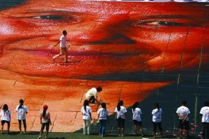 于是,李倫芳一張帶有甜蜜微笑的臉被放大到9000平方米,比標(biāo)準(zhǔn)足球場(chǎng)還大1860平方米,“經(jīng)過(guò)20天噴繪而成,用掉220卷50米長(zhǎng)的噴繪紙,僅紙張重量就達(dá)兩噸多!贬t(yī)院上周已向上海大世界吉尼斯總部提出申請(qǐng),爭(zhēng)取讓其成為“全球最大母親笑臉”。