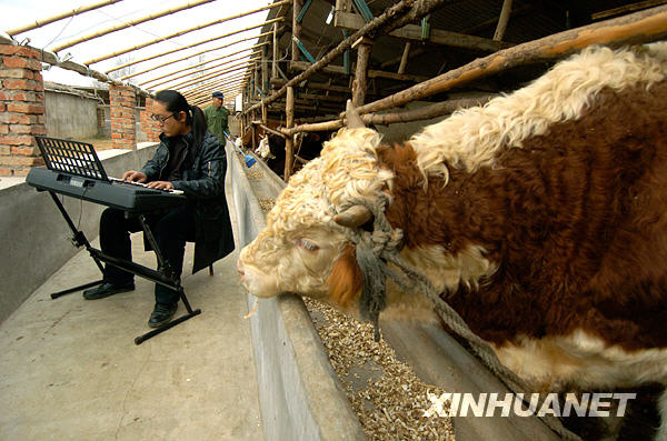 查閱大量資料后,劉海川發現,在國外早就有飼養員給牛聽音樂的事例。從那以后,每逢晴天,劉海川就把鋼琴搬到院里,給牛彈各種柔美的曲子。天氣變冷,就在各個牛圈里裝上音箱,每天定時給牛群播放鋼琴曲。