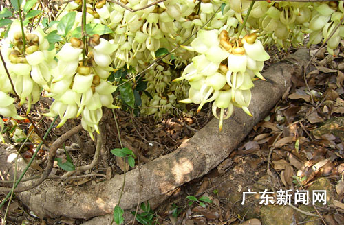 據(jù)該園工作人員介紹,這棵天有十萬朵花的主藤干直徑有30厘米,藤莖攀長周圍覆蓋約1000平方米。據(jù)中科院華南植物研究所教授陳邦余判斷,這棵禾雀至少生長了600年,非常罕見,該公園準(zhǔn)備為這棵藤申報吉尼斯世界記錄。