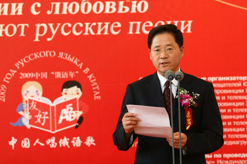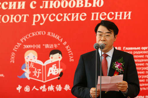 國際在線消息:(記者 衛(wèi)寧)2009年5月26日,由國家廣播電影電視總局主辦,中國國際廣播電臺、中央人民廣播電臺、北京電視臺聯(lián)合承辦的“情動俄羅斯——中國人唱俄語歌大型選拔活動”在北京俄羅斯聯(lián)邦駐華使館舉行了盛大的啟動儀式和新聞發(fā)布會。教育部副部長郝平、外交部副部長李輝、國家廣電總局副局長田進、中國人民對外友好協(xié)會會長陳昊蘇、俄羅斯駐華大使拉佐夫和中國國際廣播電臺臺長王庚年以及活動各大分唱區(qū)承辦方代表、中俄兩國媒體記者和俄語界、文藝界代表等150余人共同出席了啟動儀式和新聞發(fā)布會。