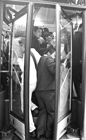 乘坐公交車是上班族的首選出行工具,近日一篇《早上擠公交要瘋了!擺一擺重慶最擠的公交車》熱帖引來上班族的共鳴,如今點擊已經上萬,近600名網友回帖一吐心聲!盀榱松习嗖贿t到,除了瘋擠我別無選擇”,公交一族的心聲既心酸又無奈。在重慶,究竟哪路公交車最擁擠?網友們根據自己的出行情況,總共提出96條候選線路。昨日,記者根據網友提出的“最擠公交候選名單”,對部分公交車進行了體驗。