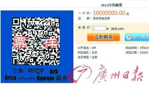淘寶上,有賣“方舟船票”的,有賣“方舟直達解放牌貨車車票”的,有用谷歌地圖追尋方舟在地球上的停靠點的。一名網友1000萬元叫賣“方舟船票”最為火熱,不少網友回帖詢問能否打折、如何鑒別真偽,還有詢問有否包含災難后重建送指定城市戶口。