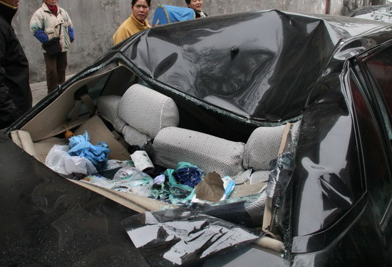 據揚子晚報報道 前天上午,一男子從南京南湖莫愁大廈16樓跳下,落在一輛停著的轎車上,車被砸壞了,人卻奇跡般地活著。據分析,是空中的電線和車頂救了男子一命。