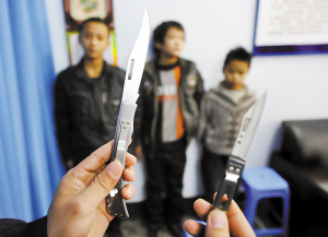 小云姓魏,11歲的他身高只有1米2,一張娃娃臉,看起來根本不像一個盜竊團伙骨干,更像是一個小學生。身上衣著單薄,長期的流浪生活還使得他感染了疥瘡。“他年紀雖小但很不簡單,除了盜竊,還伙同其他流浪兒,多次持刀搶劫婦女和學生!”反扒支隊副支隊長周濤掏出了一把8厘米長的折疊刀,這是從小云身上起獲的。