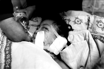 苗苗喝水只能依靠吸管。本報記者潘之望攝