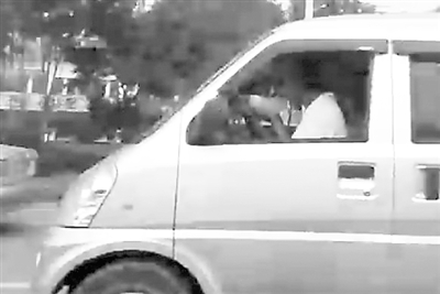 記者昨看到,這段視頻長1分半鐘,是兩個山東口音的男子,路過關(guān)山大道金地太陽城小區(qū)路段時拍攝的。這個“最牛”的男司機(jī),手里捧著一個橙黃色的大碗,右手拿著筷子,竟然邊開著車邊吃面,拍攝者驚呼“哥們,你帥”!不僅如此,該司機(jī)在駕著這輛車牌號為鄂AZ**99柳州五菱牌的微型面包車,先是開在左側(cè)車道,從一輛大卡車的左側(cè)進(jìn)行超車,超車成功后,他又變道到最右側(cè)車道,再次超越一臺小轎車。該司機(jī)一分鐘左右的時間內(nèi)連超兩車,都是在吃面的情況下進(jìn)行的,直到超越第二臺車,拍攝者才發(fā)現(xiàn)該“最!彼緳C(jī)將面吃完。