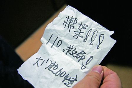 紙片是從6樓飄下的,上面用黑筆寫著“綁架!!!110,救命!大門邊604室”。