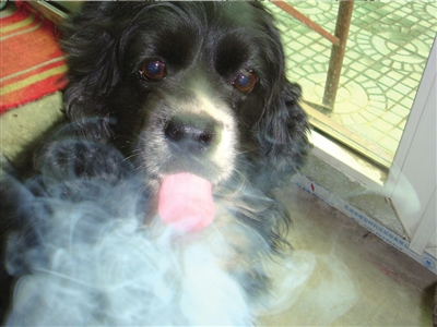 可卡狗經(jīng)常主動要吸二手煙。李女士供圖