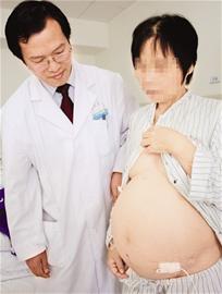 因腹膜后長(zhǎng)了巨大腫瘤,50歲的林女士腹部嚴(yán)重隆起,看起來(lái)像個(gè)快臨盆的孕婦。在多家醫(yī)院,林女士均被判“死刑”,醫(yī)生說(shuō)血管都被包住了,腫瘤無(wú)法切除。近日,林女士來(lái)到廈門(mén)大學(xué)附屬第一醫(yī)院,醫(yī)生幫助她“產(chǎn)下”一個(gè)近40斤的大肉團(tuán)。