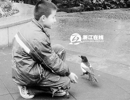 喜鵲只跟小男孩一人玩