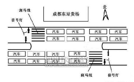 為驗(yàn)證這一說法,記者來到了位于駟馬橋路的成都東站貨場——“雷人斑馬線”真的存在。這條“Z”字形的斑馬線缺口長達(dá)5米,要過馬路,必須從右邊的斑馬線走到路中間,再順著車流,走到左邊的斑馬線上。