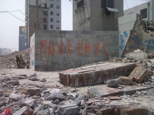 一個近100年歷史的名校進入無門時代,如此黑暗的現實,就是在二七拆遷辦的野蠻暴行下發生的,強烈譴責二七拆遷辦的行為.!! 一個不顧學生安全的部門,! 一個不顧學生死活的社會.!一個不顧人民生命尊嚴的國家,我欲哭無淚...