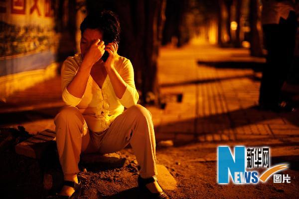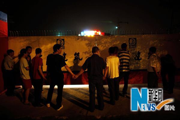 5月9日凌晨,家屬在發生事故的工地門口等待消息。新華社記者盧漢欣攝