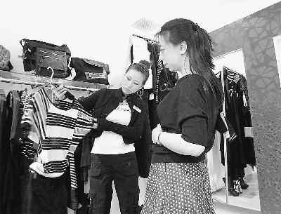 北京某大商場內,望“價”暗嘆的購衣者。 本報記者 李維娜攝