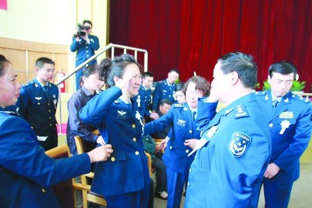 在5月10日的追悼會上,馮思廣的妻子田文君給濟空司令員劉忠興中將敬軍禮。田文君說,“這輩子,嫁給這樣的飛行員不后悔……我一定替思廣為父母盡孝,讓他在天堂無牽掛……”崔文斌攝